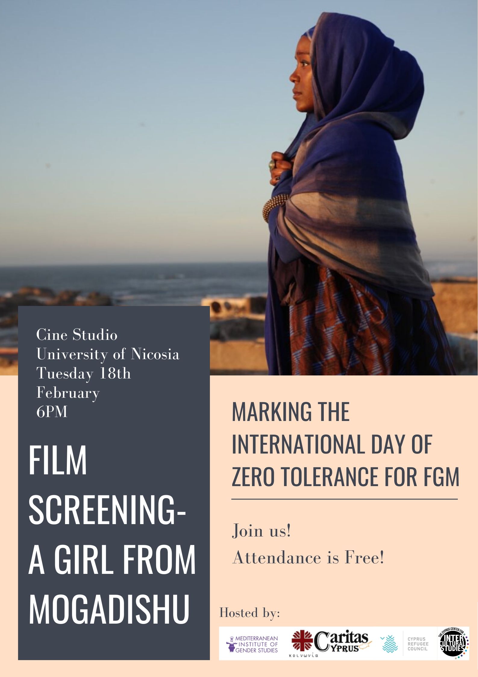 The event was free and open to the public. The screening was supported by multiple NGOs: Caritas Cyprus, The Cyprus Refugee Council, The Cyprus Center for Intercultural Studies (University of Nicosia).