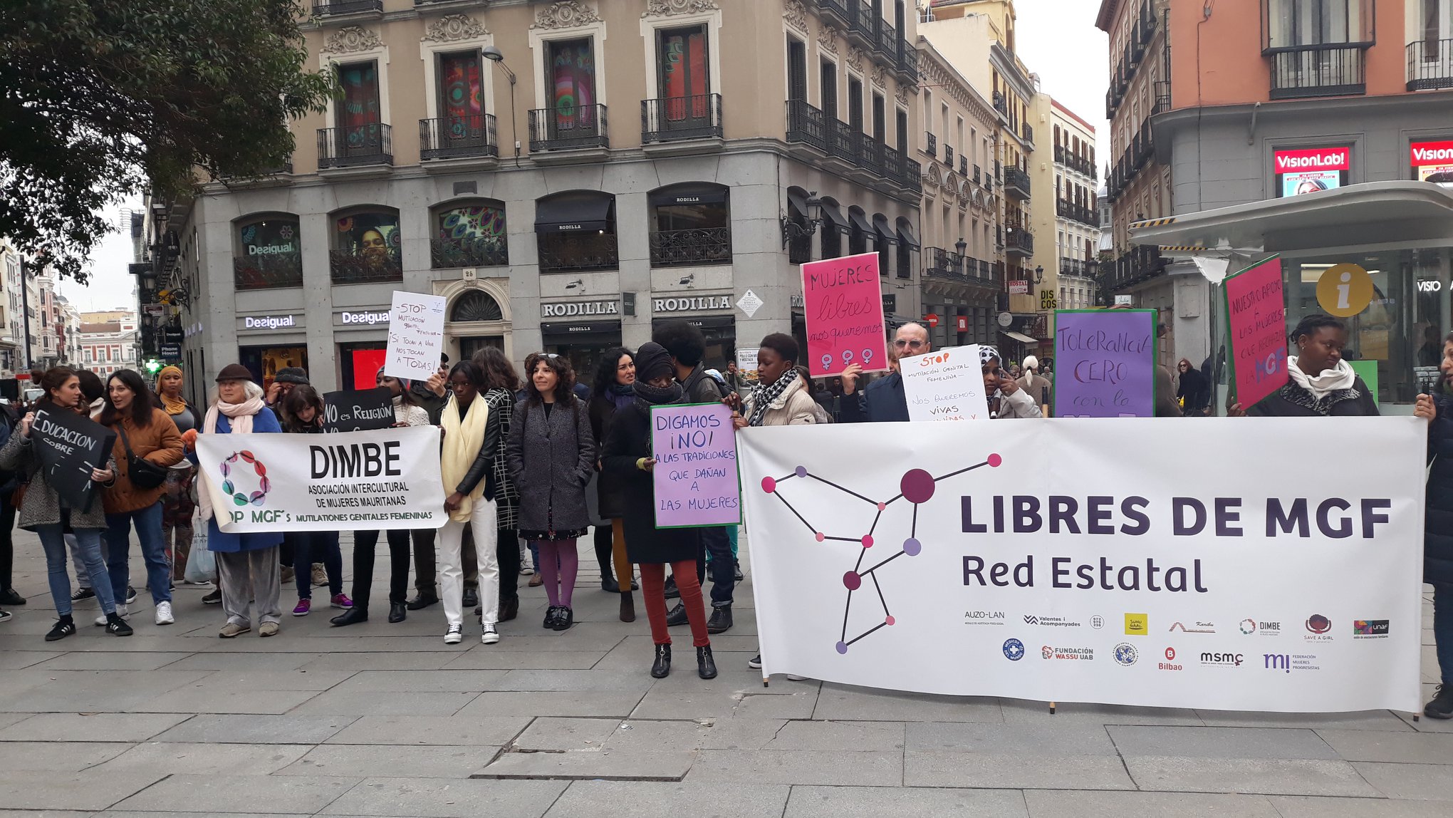 In addition, on February 6th UNAF co-leaded the demonstration of ‘Libres de MGF’ Network (Free of FGM Network) in the center of Madrid to claim the end of FGM, where a joint manifesto was read and featured the musical performance of ‘Astrid Jones and the Blue Flaps’. Check out the video just here! This was the first action and public presentation of the network, promoted by UNAF and formed by 19 entities, professionals and activists from all around the country, who have joined forces to advance the attention and eradication of FGM through coordination and networking at the state level in Spain.