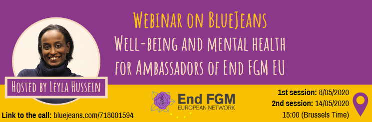 At End FGM EU, we know that the well-being and mental health of our Ambassadors is essential. That's why, during the Spring, the Network organised sessions for them with Dr Leyla Hussein, a psychotherapist.