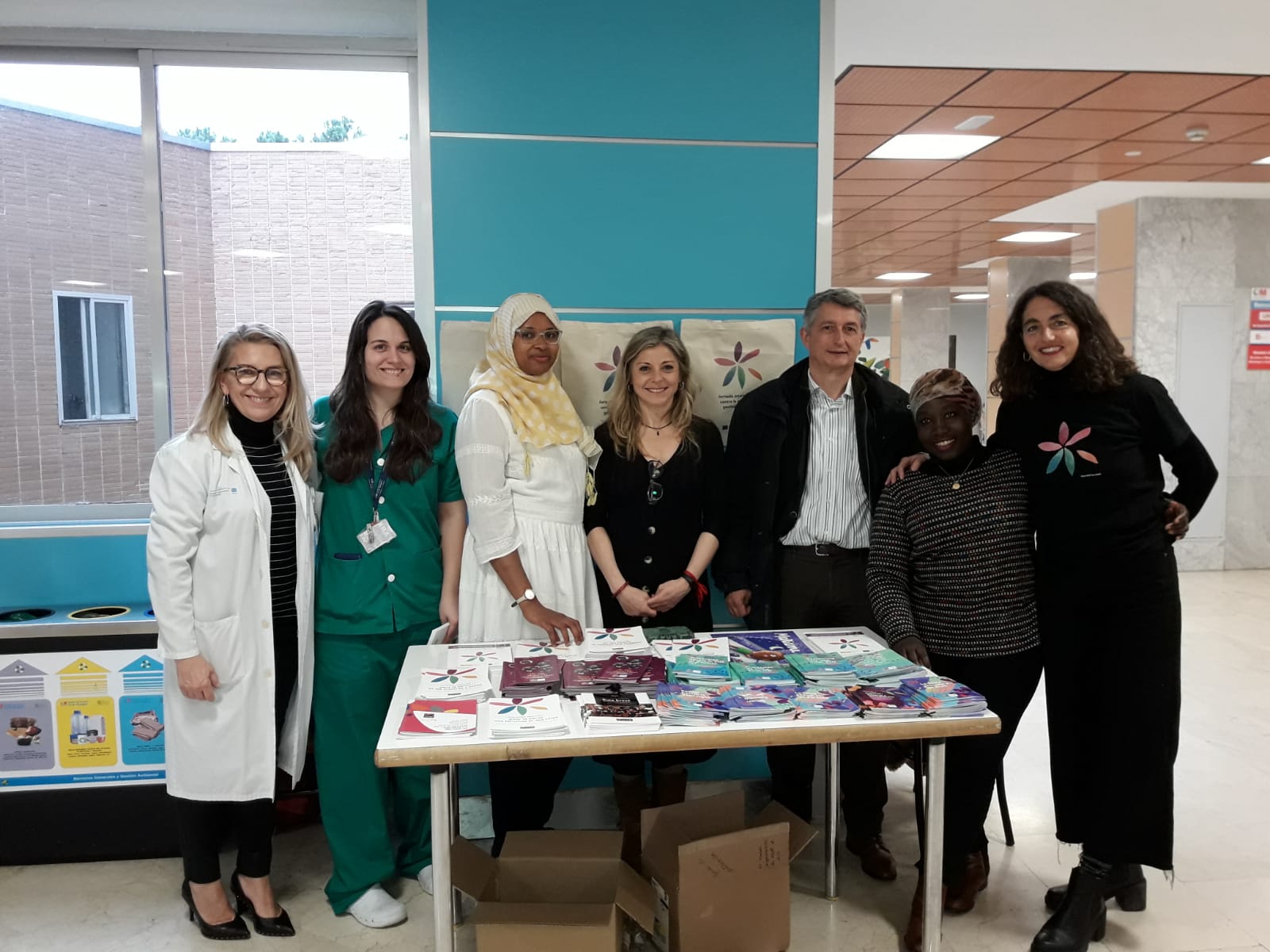 Awareness and vindication actions on the occasion of International Day continued on February 12th with an information table at the ‘12 de Octubre’ Hospital in Madrid, where UNAF team together with cultural mediators, part of the hospital’s medical team and a representative of the Regional Government informed about FGM and offered UNAF materials for prevention and care.